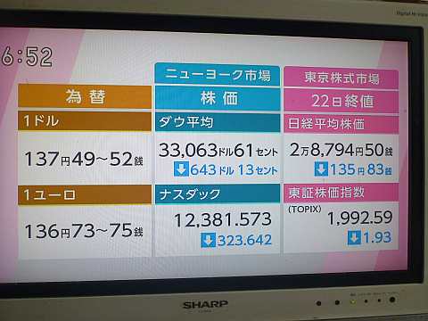 昨日の株価。