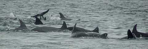 最大200頭のイルカの群れに会えることも