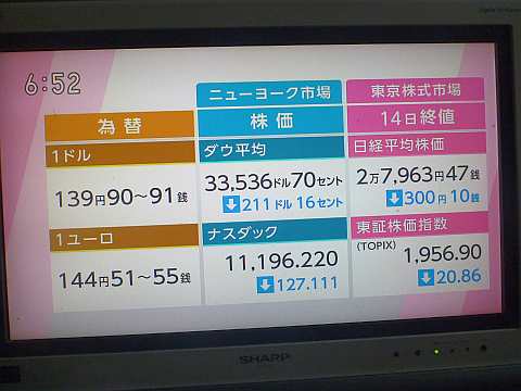 昨日の株価。