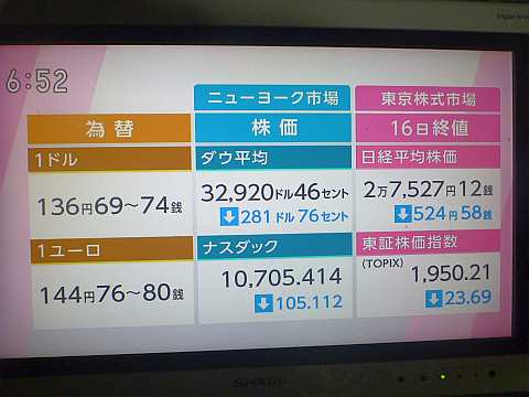 昨日の株価。