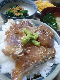 朝の胡麻さば丼。