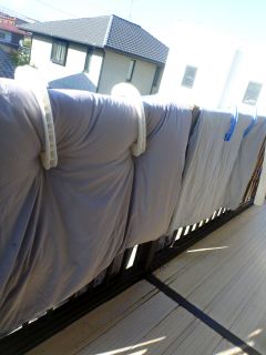 布団を干しました。。