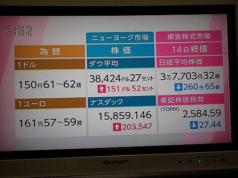 昨日の株価。。