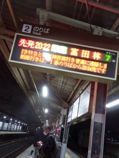 20:22の電車、20:38のバス。