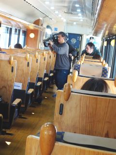 たった4分ですが、観光特急「海幸山幸」に乗車。