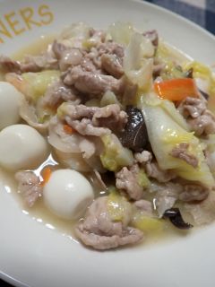 夜は八宝菜。