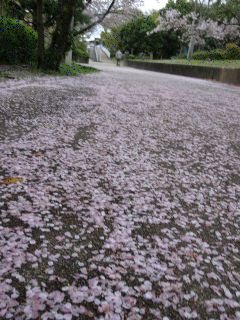 雨で桜がかなり散りました。