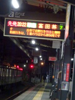 20:22の電車、20:38のバス。