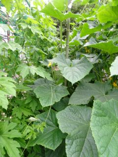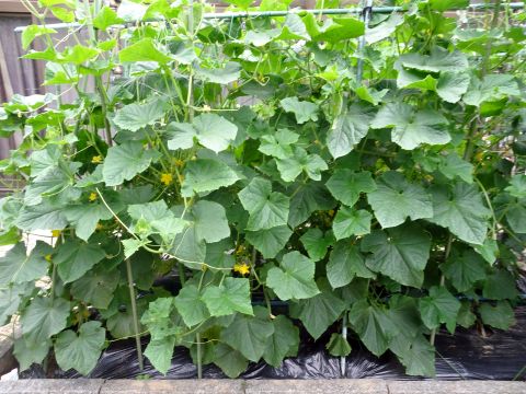 お庭の様子。きゅうりは続々。