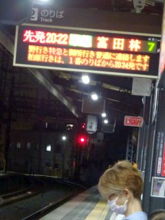 20:22の電車、20:38のバス。
