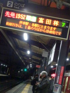 19:52の電車、20:08のバス。