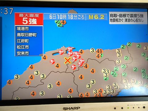 鳥取&島根で震度5強の地震。