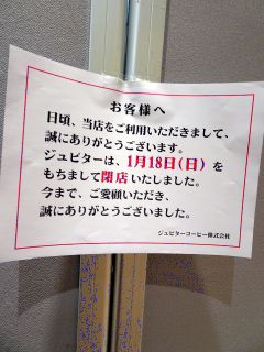 イオンのジュピターが閉店してました。