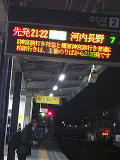 21:22の電車、21:38のバス。