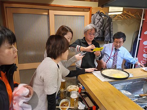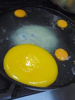 なぜかダチョウの卵の目玉焼きで坂井さんの誕生日を祝ってました。