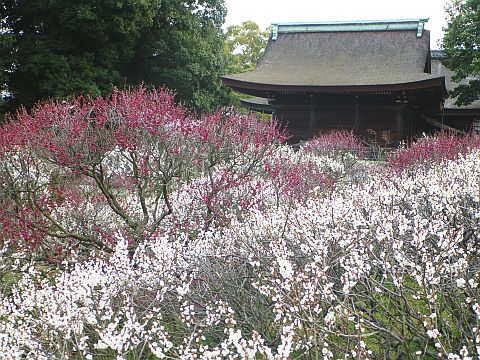 道明寺天満宮では梅はほぼ満開。