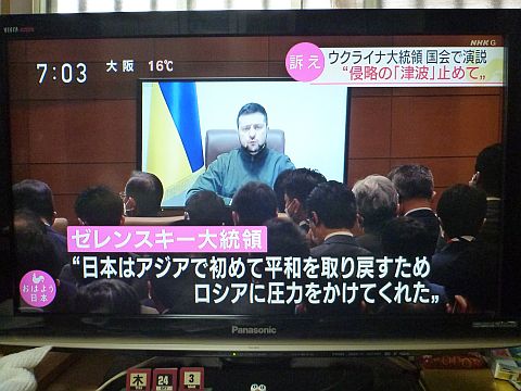 セレンスキー大統領がWEBで国会演説を昨夜しました。