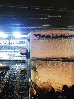 一ノ関に着いたら雪が積もってました。