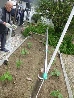 きゅうりの苗にネットをかけました。