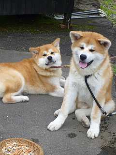 秋田犬のだいちゃんとはなちゃん。