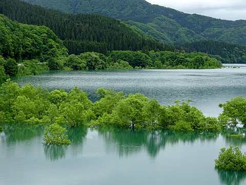 秋田県仙北市田沢湖地区の玉川ダム下流にある秋扇(しゅうせん)湖で、