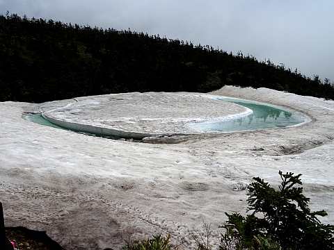 (※5月の下旬から6月の上旬にかけて八幡平頂上付近の鏡沼の雪解け状況が、