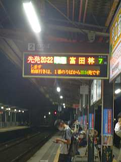 20:22の電車、20:38のバス。