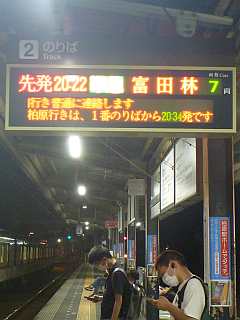 20:22の電車、20:38のバス。