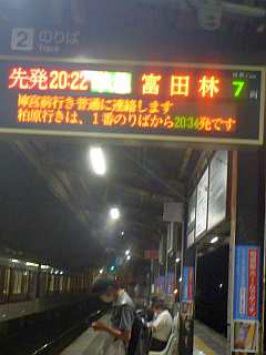 20:22の電車、20:38のバス。