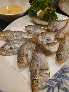 カツオタタキ・ハランボ塩焼き・ウツボ唐揚げ・川エビから揚げ・
