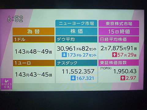 昨日の株価。