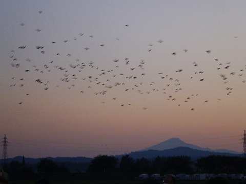 夕暮れの景色、向こうの山は鳥海山。
