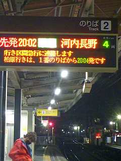20:02の電車。21:08のバス。