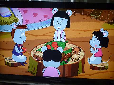 まるちゃん見ながら家ごはん。