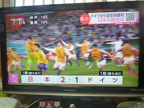 サッカーワールドカップ。日本がドイツに勝ちました。