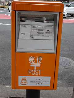 ポストもバスもオレンジ色です。