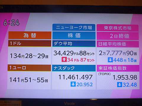 昨日の株価。