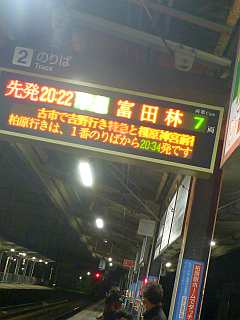 20:22の電車。20:38のバス。