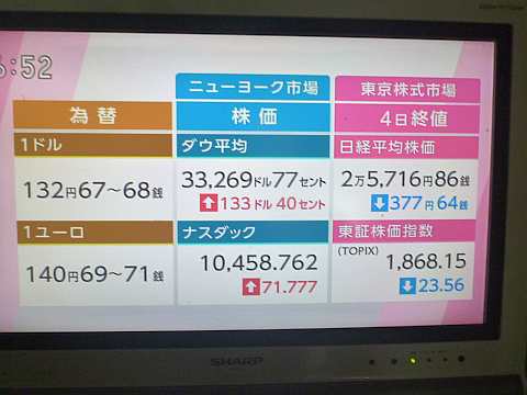 昨日の株価。