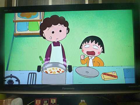まるちゃん見ながら家ごはん。