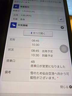 青森空港が雪なので仙台空港に行くかもと