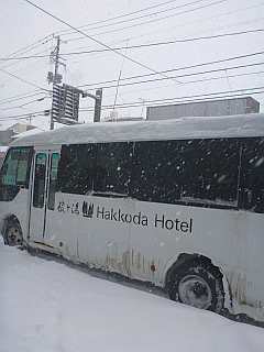 お宿の送迎バス。14:00出発