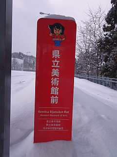 三内丸山遺跡から雪の中15分ほど歩いて青森県立美術館へ。