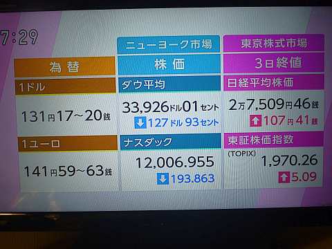 昨日の株価。