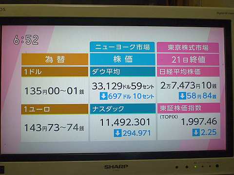 昨日の株価。