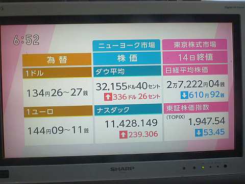 昨日の株価。暴落!