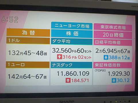 昨日の株価。