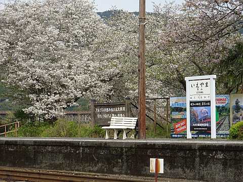 大井川鐡道 家山駅。いい感じで桜が咲いてます。