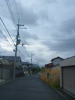 朝の散歩。雨が降り出したので引き返し。