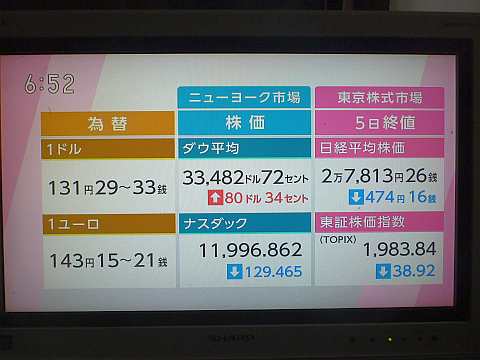 昨日の株価。